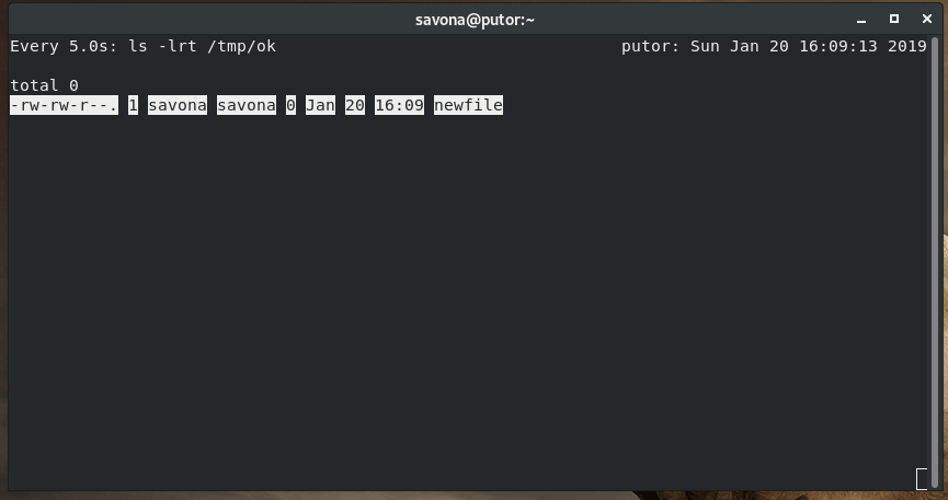 As you can see I mistyped grep above, but luckily I used the -e option so watch won’t continue running in error.